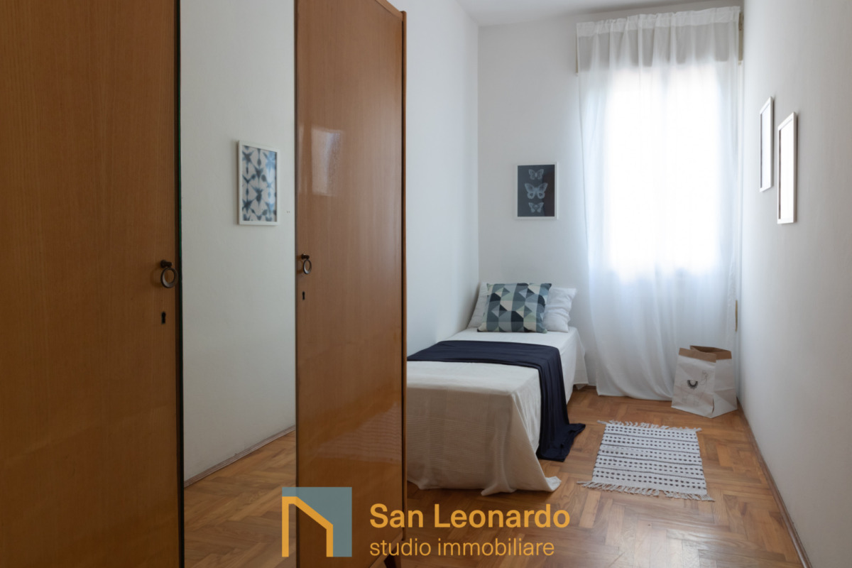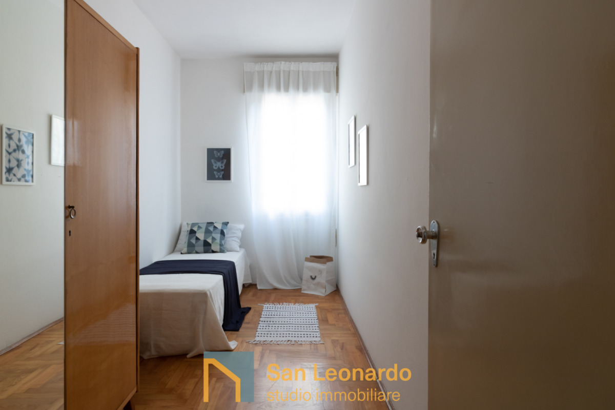 Proseguendo, troviamo le DUE CAMERE (una matrimoniale ed una singola) e il bagno: potrebbe essere creata, giostrando gli spazi con FUNZIONALITA’, una zona lavanderia dove poter inserire una lavatrice e un lavandino oppure un disimpegno da attrezzare con COMODA ARMADIATURA.