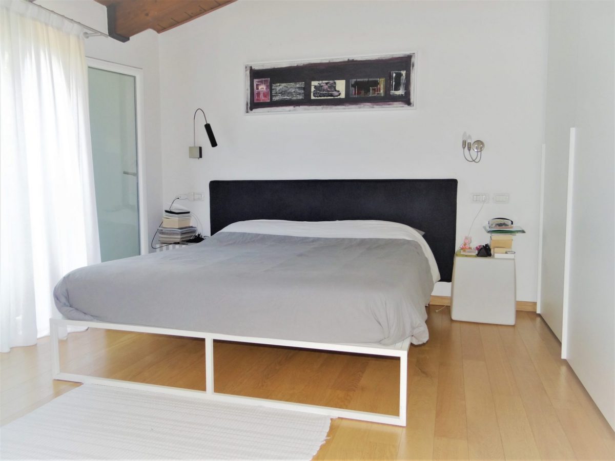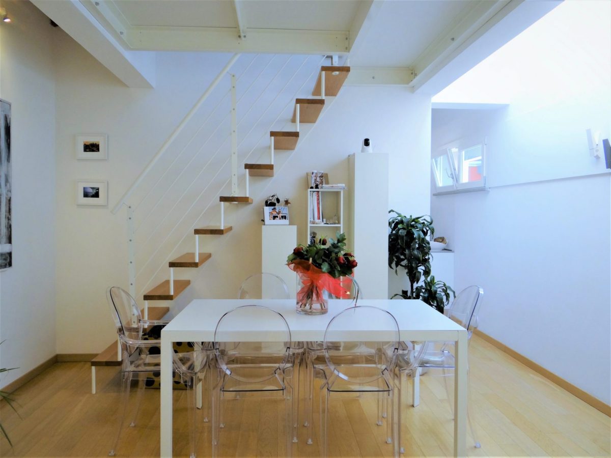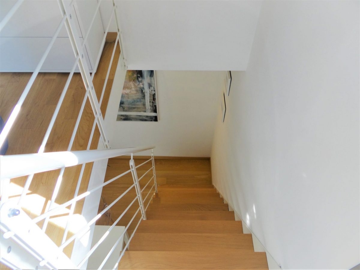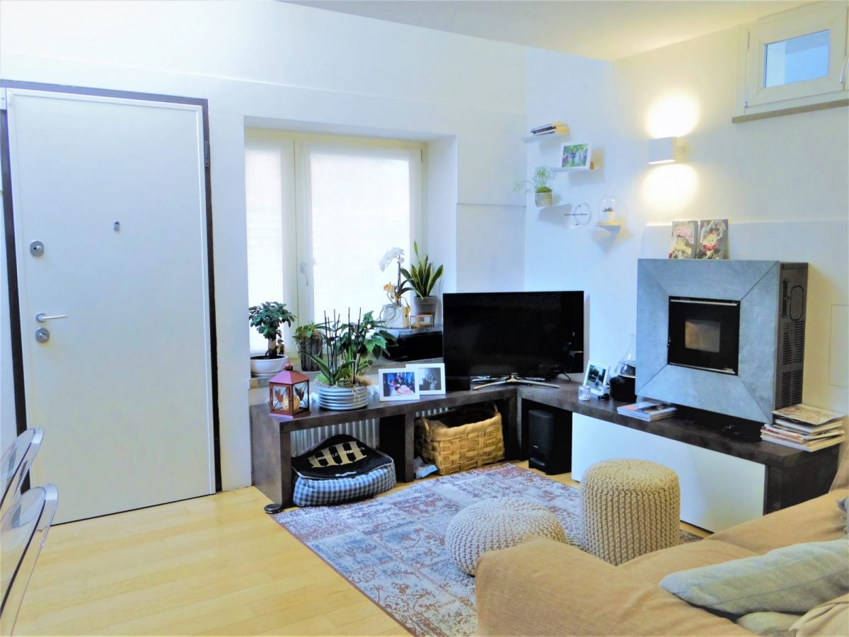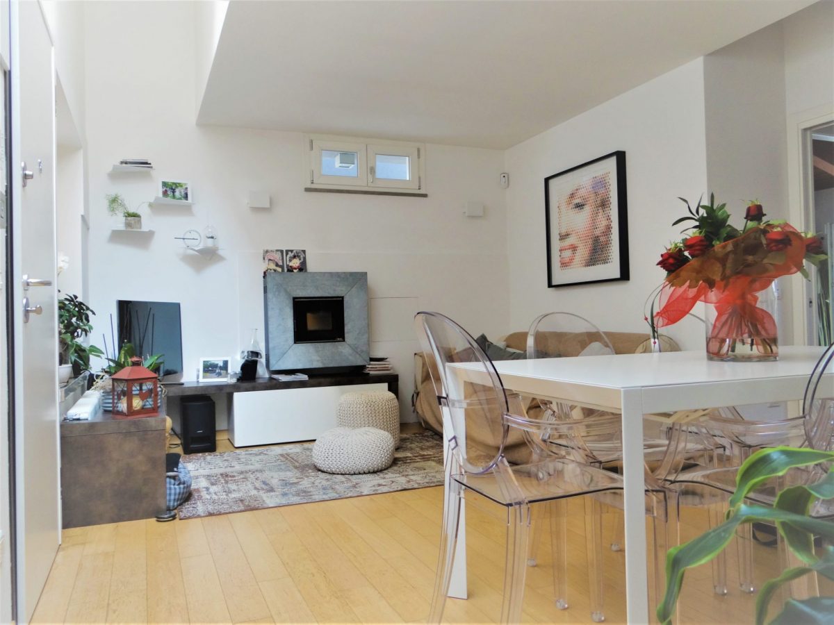 Finiture laccate bianche oltre a un’esposizione molto luminosa conferiscono luce e calore agli ambienti: travato a vista con travi di legno chiaro e parquet di rovere chiaro che aiuta ad aumentare l’effetto di  lucentezza che si coglie appena entrati nell’abitazione. Stufa a pellet di design con canalizzazione, climatizzatore bizona e bagno rifatto in chiave moderna. Al piano superiore, studio comodo e riservato oltre a una comoda terrazza a tasca.